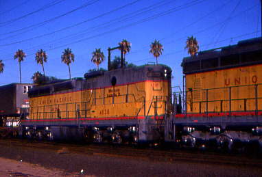 1975 -- Union Pacific SD24 411, built by Electro-Motive Division in 1959 and retired in 1977, making its way east through Colton. It was sold to Precision National Corporation in October 1977 then sold to Illinois Central Gulf and rebuilt as Illinois Central Gulf SD20 2010 in February 1980, then Illinois Central 2010. It was then sold to National Railway Equipment in February 1995, became Indiana Harbor Belt 2921 in 1996 and Cargill Incorporated 605 in 2016.