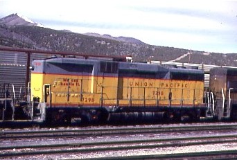 August 1980 -- Union Pacific GP30B 729B, built by Electro-Motive Division in 1963 and retired in 1983, then scrapped in 1986, waited for departure from Pocatello, Idaho.