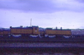 July 1982 -- In the dead line at Cheyenne, Wyoming during the national railroad strike was Union Pacific gas turbine electric locomotive 18, built by General Electric in 1960 and retired in 1970. An example of the most powerful locomotive ever built in America, it was rated at 10,000hp and consisted of the cab unit; the main power unit containing a turbine engine, similar to a jet engine, numbered 18B; and a tender to carry fuel for the turbine. The railroad designed these locomotives specifically to pull freight trains between Omaha, Nebraska and Ogden, Utah and 18 is one of only two in preservation. Their poor fuel economy and high maintenance costs of the turbine led to their retirement in the late 1960s.