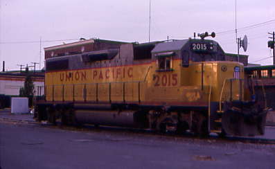 June 1982 -- Union Pacifc GP38-2 2015, built by Electro-Motive Division in 1974, rested in Yakima, Washington. It was re-numbered in October 2002 as 515.