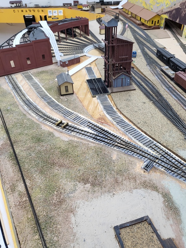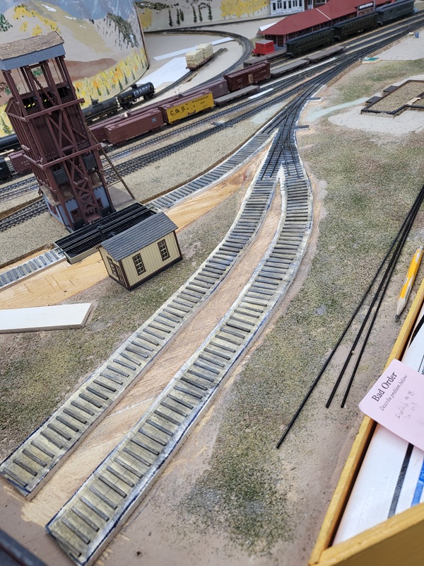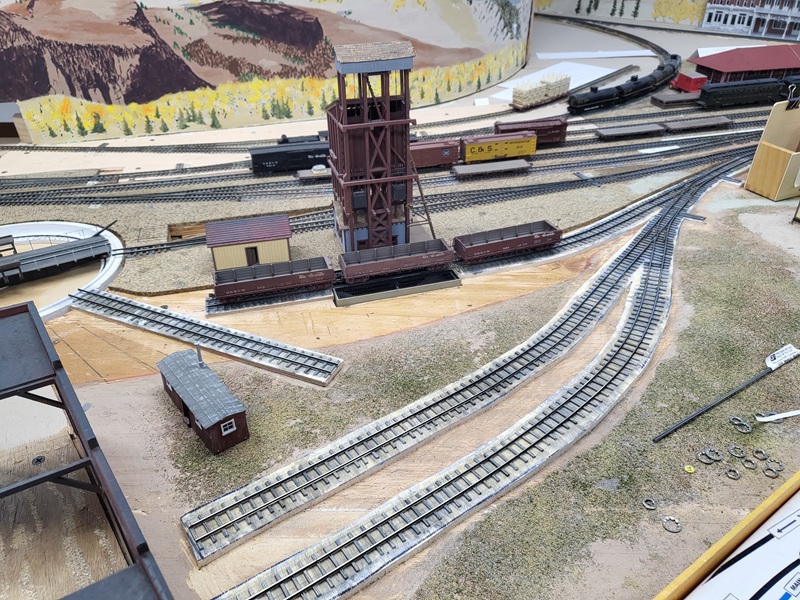 TomG added the switches and roadbed for the two new tracks to the yard for the rotary train and work cars. The rails to the coaling tower were removed to be replaced.