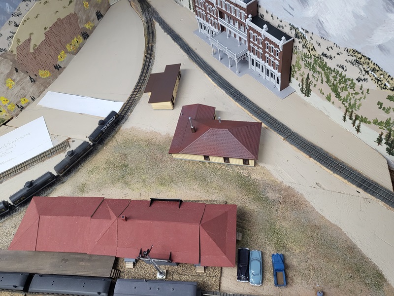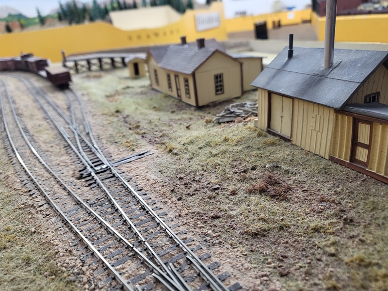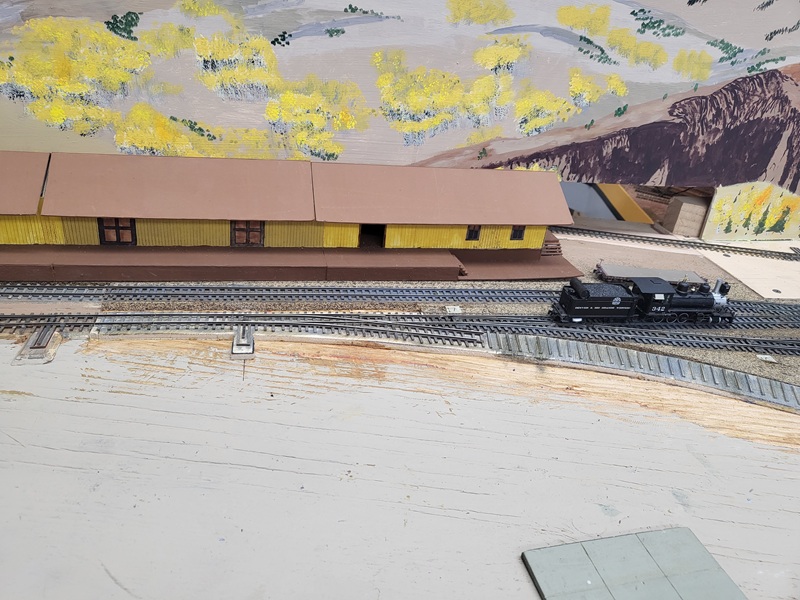 the freight house, which really made those details pop! KentS built a backdrop for the throughway to the Baldwin Branch. TomG imstalled the