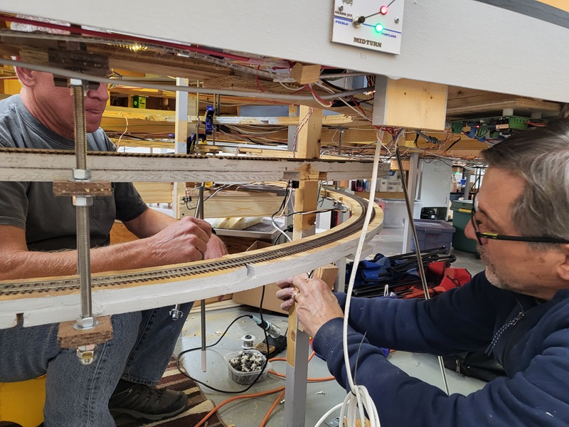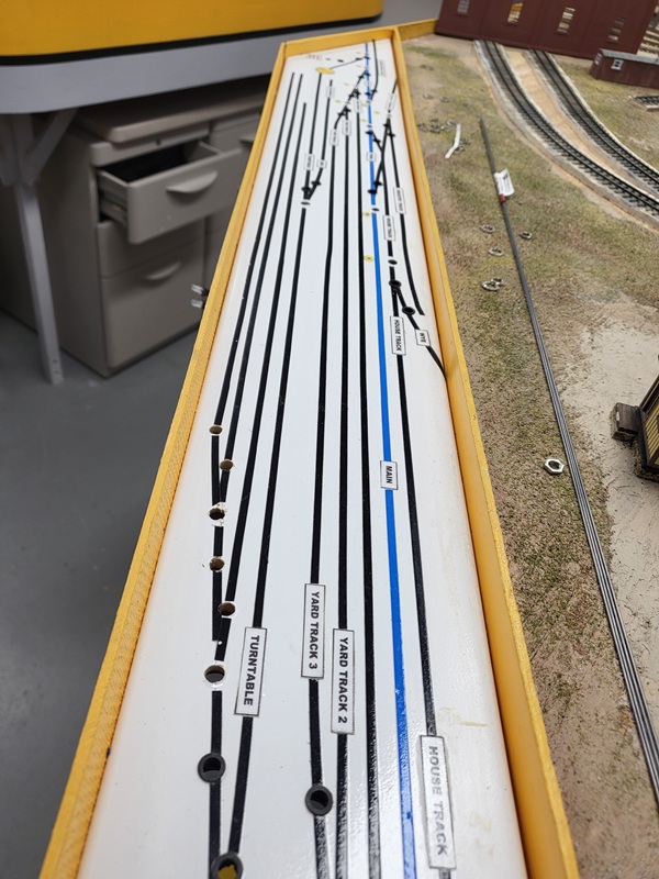 TomG finished laying the rails on the work car track, new garden track, and coaling tower. GaryM finshed installing new switch panels with new track layout,
