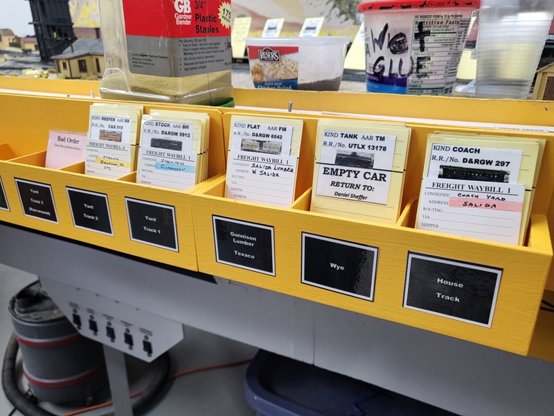 KentS tore off the West Salida switch panel, temporarily remounted each switch toggle so track remains fully operational. GlennG came out to layout the buildings on the south side of first street. GaryM worked on some track cleaning and ballast patching along the mainline.