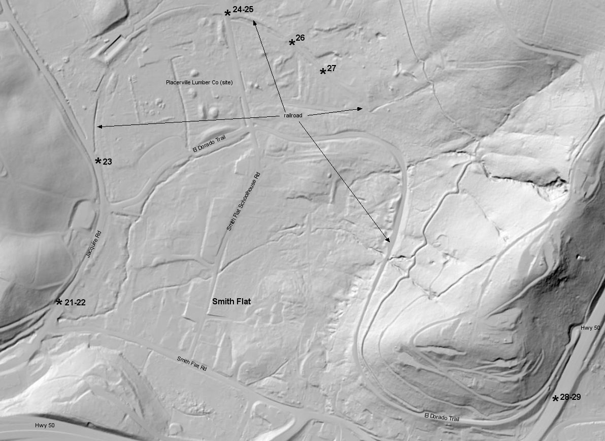 Google satellite and USGS Lidar images of Smith Flat marked with the above image locations.