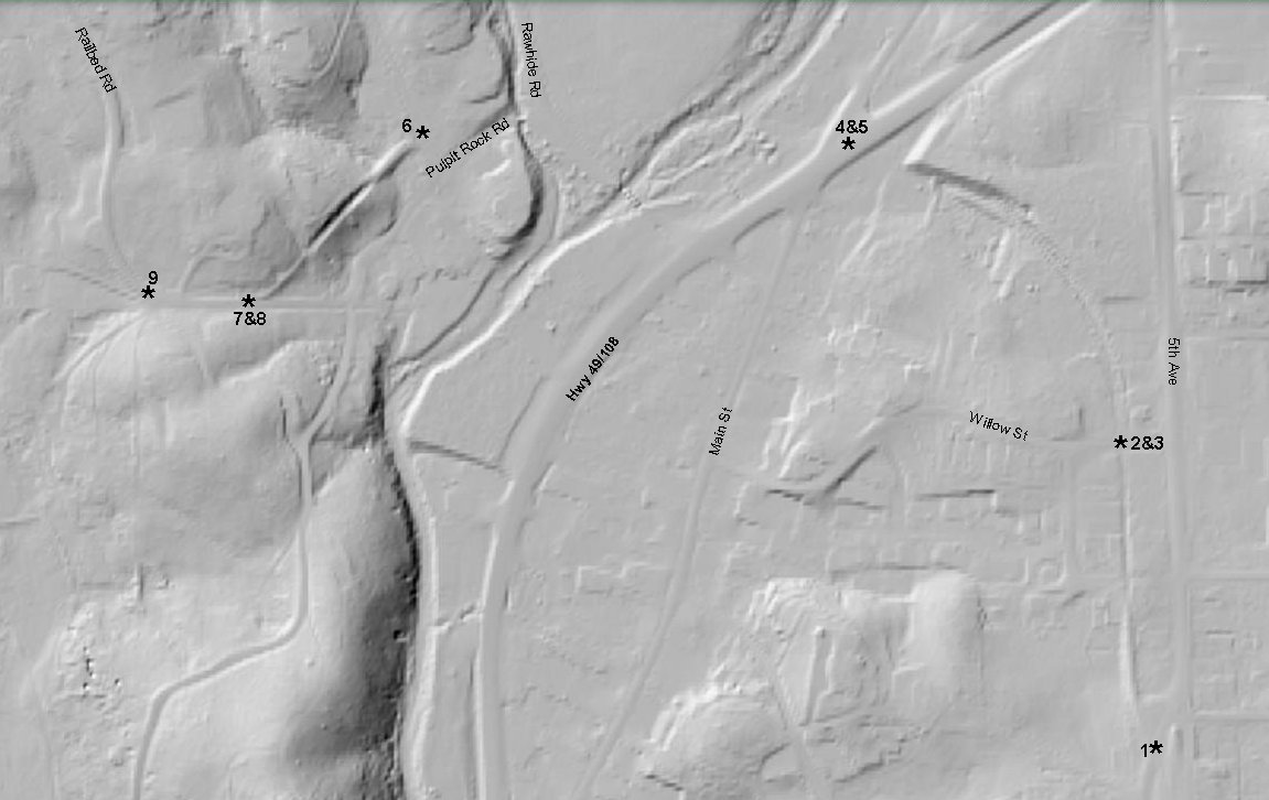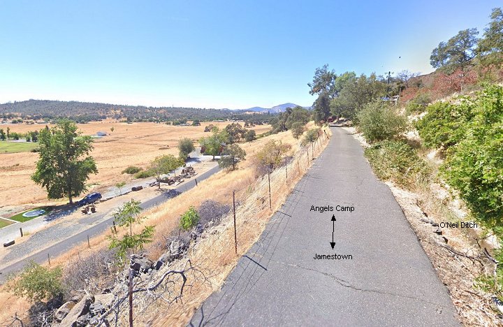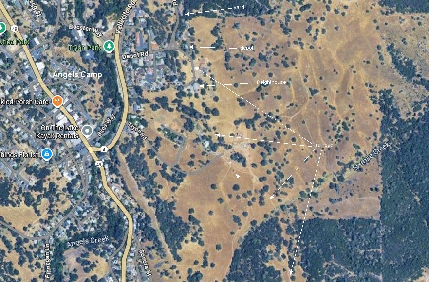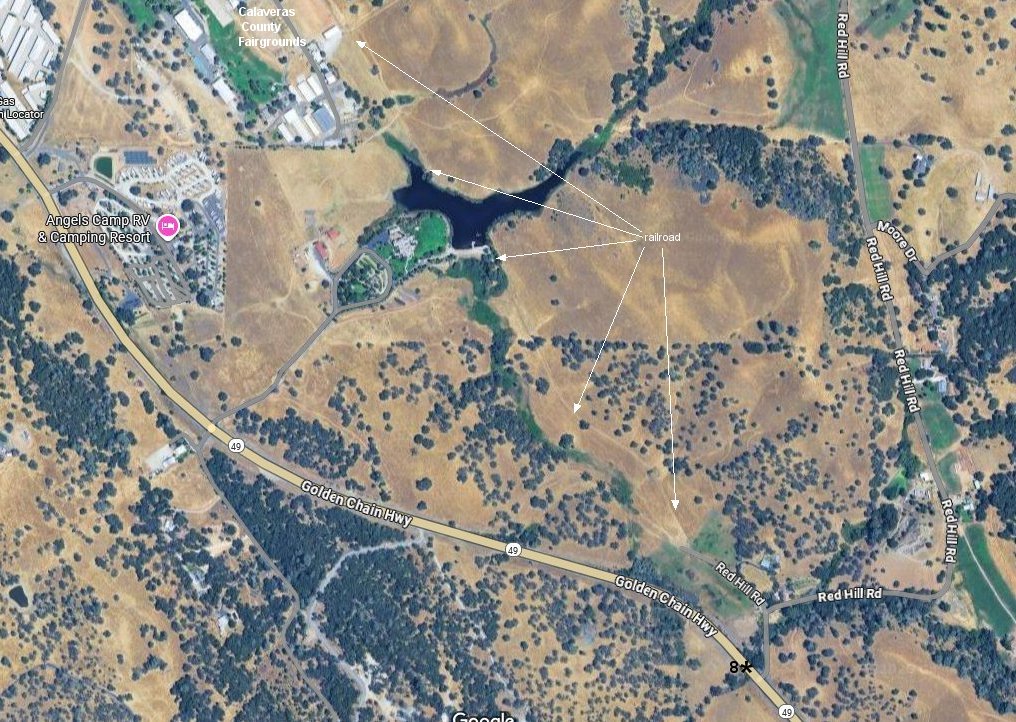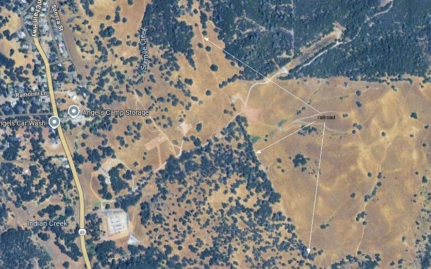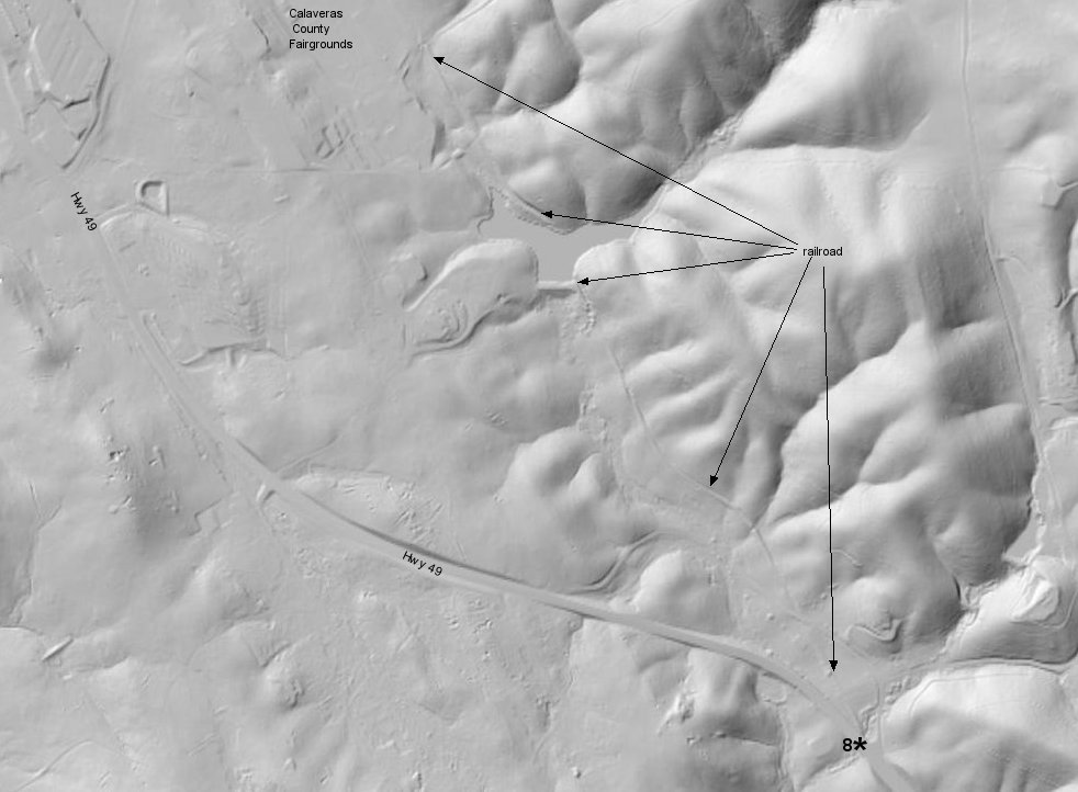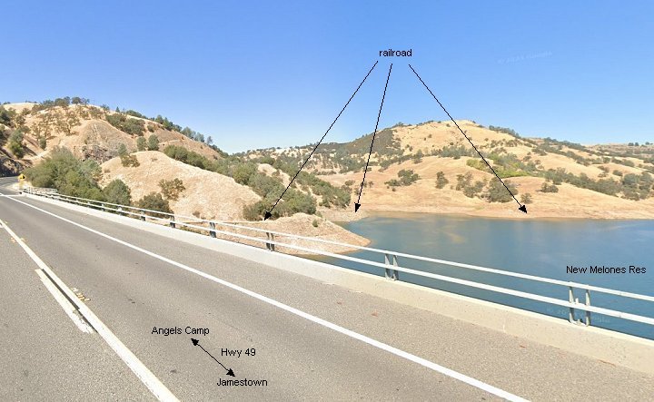 At the lake, the line used two switchbacks to descend into the canyon for its crossing of the Stanislaus River and two more to ascend the other side.