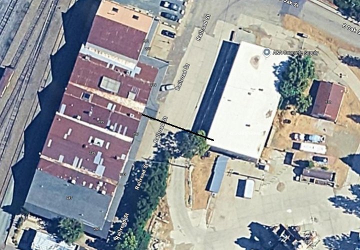 Southern Pacific once based helper locomotives in Colfax and built a seven stall enginehouse near the wye to service them. Only two footings for the walls remain.