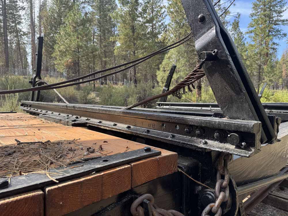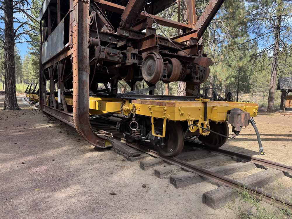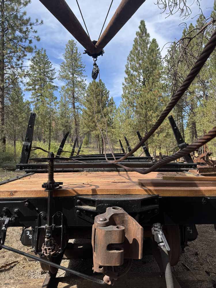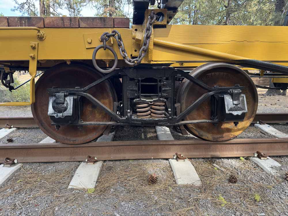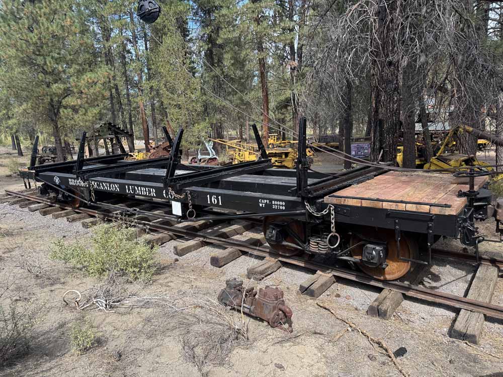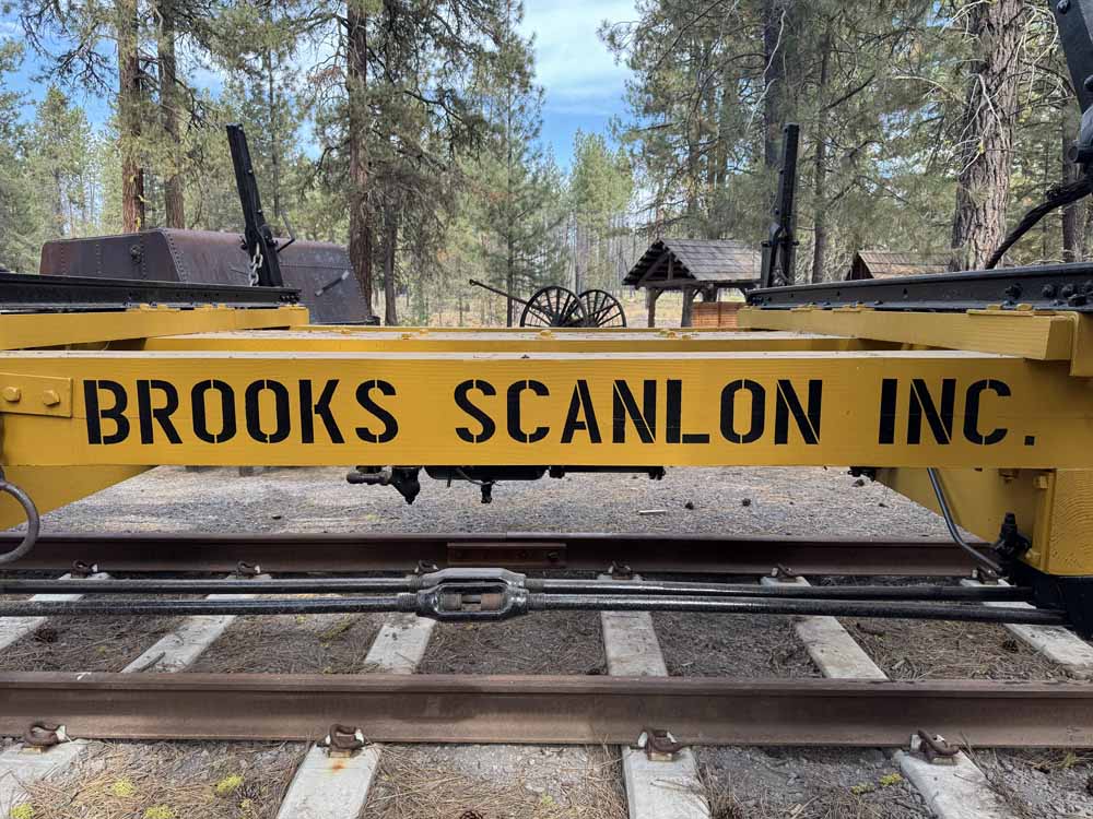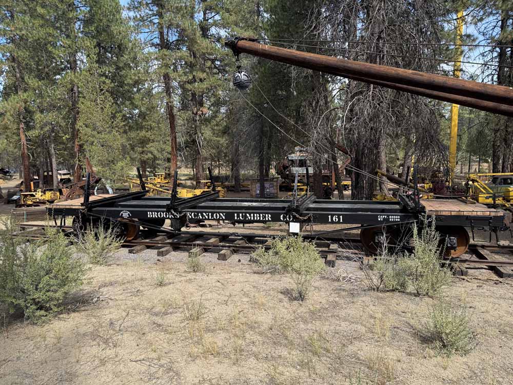 Amongst the collection of logging artifacts on display at the Collier State Park Logging Museum near Chiloquin, Oregon, are three Brooks-Scanlon log flats. The cars were displayed for decades with a stiff boom McGiffert loader originally constructed for the McCloud River Railroad. Unfortunately, several decades of exposure to the elements had not been kind to the cars- the one underneath the loader was still relatively intact, but the other two were in bad shape. All wood parts of these cars, along with the McGiffert loader, burned in the Two Four Two fire in September 2020. Oregon State Parks let a contract in the summer of 2022 to fully restore the burned equipment, and the beautifully restored cars are now back on display in the museum. |