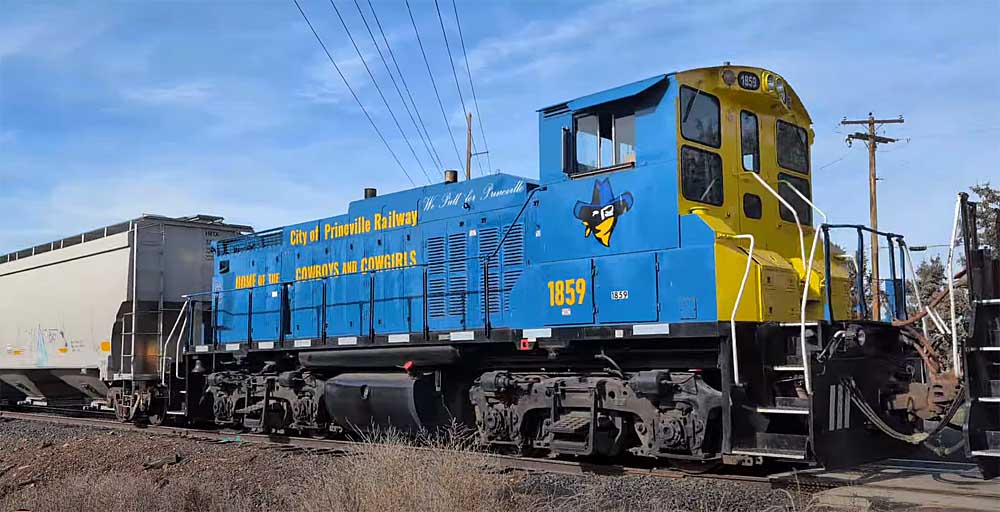 City of Prineville #1859 in March 2026 with some lettering reflecting a pride in local community not seen on many railroads. Parker Gibson photo. |