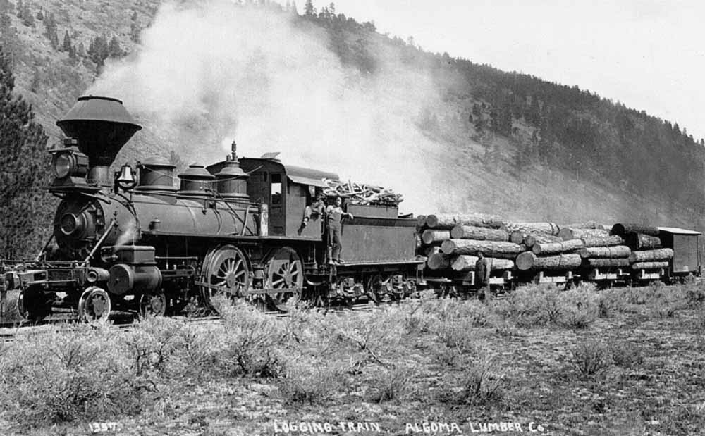 History The Algoma Lumber Company got its start as a joint venture between Frank Paige Fay and his nephew E.J. Grant. The company initially existed primarily to supply Fay's Faye Fruit Company with box shook, the industy term for the pieces of a wooden shipping box that would be shipped bundled together from a box factory to the point of use, where the pieces would be assembled into a box. In 1905 Algoma built a box factory adjacent to a sawmill operated by the Bridgeford-Cunningham Lumber Company at Algomah on the line of the McCloud River Railroad Company in northeastern California. Algoma filed a lawsuit against the Bridgeford-Cunningham company in early 1907 after learning B-C operated the mill and timberlands and a lessee, when in fact they had represented themselves as owning the operations at the time the two parties signed the original agreement. That development apparently caused Algoma to start looking elsewhere, and they shortly built or bought a box factory at Montague, California. The Montague factory needed a lumber source, and instead of contracting lumber from a sawmill Algoma decided to enter the lumber manufacturing business directly. Algoma located some timberlands and a sawmill site near New Pokegama, at the end of the Klamath Lake Railroad. The sawmill opened in 1908 and started shipping lumber over the Klamath Lake and Southern Pacific railroads to the Montague box factory. The operation, including logging railroads built into the timber, operated successfully until 1911 when the timber ran out. Algoma initially purchased the small 0-4-2T locomotive named Old Blue and four log cars from the Pokegama Sugar Pine company, later supplemented by an ancient 1872-built 4-4-0 purchased from the Southern Pacific and named the Helen Grant in honor of E.J. Grant's wife. The end of operations at Pokegama forced Algoma to look for a new home for their operations. The company quickly found a new sawmill site at Rattlesnake Point north of Klamath Falls, and it brought the Helen Grant, the four log cars, and the rails from Pokegama to the new site. Algoma also moved the Montague box factory north to the new sawmill as well to consolidate all of their operations to a single plant. The new sawmill opened in 1914. The company's first logging railroad ran up Plum Valley to the southeast of the mill, but access to any further timber required the company to build a 2,600-foot long incline that ran up the side of an 800-foot tall rimrock cliff near the sawmill, which they completed in 1915. The logging railroads spread out north and south from the top of the incline. Logging remained active in that area until 1918, when the timber ran out. Algoma's next move took it north to Kirk and to a large block of timber on the Klamath Indian Reservation the company won in 1917. Algoma promptly broke ground on a new logging railroad running west into the timber. Logging in this area lasted until 1929 when the timber was again exhausted. Southern Pacific supplied the log flats that hauled the logs from Kirk back south to Algoma. Algoma's final rail logging operation involved harvesting fire damaged timber plus another newly acquired block of timber in the Swan Lake and Antelope Valley areas, which required the company in late 1926 or early 1927 to rebuild the incline and several miles of the old logging railroads above the incline. A 1926 Lumber Industry Directory described Algoma's operations as follows: "Algoma Lumber Co., 205 Fay Bldg., Los Angeles, Cal.; camp post office, Algoma; daily output, 200M; 2 sides; 400 men; machine shop; commissary; electric light plant; air compressors; 1 McGiffert loader; 6 logging tractors; 6 sets big wheels; 24 horses; route supplies via Southern Pacific; camp telephone viat Klamath Falls; manager, E.G. Grant; superintendant and purchasing agent, Matt Egan; master mechanic, Fred Stewart; 10 miles s.g. track; 60 lb. rail; 2 rod locomotives; 60 flat cars; 6 moving cars; maximum curvature, 4 degrees; locomotive fuel, oil; trucks and flat cars supplied by the Southern Pacific railroad." Algoma operations lasted until 1935, when the company shifted its operations to several more blocks of newly acquired timber, but delivering those logs to the mill was accomplished only by trucks and log rafts on Klamath Lake. Algoma sold the remaining timber above the incline and the railroad to Kesterson Lumber Company, who continued operating it until the timber ran out in 1941. The Algoma mill would only last another two years, as a lack of any additional timber to cut forced the mill to close forever on 11 April 1943. Concrete foundations from the mill, the grade of the incline and many miles of logging railroad grades, and at least one large trestle remnant mark the operation today. |