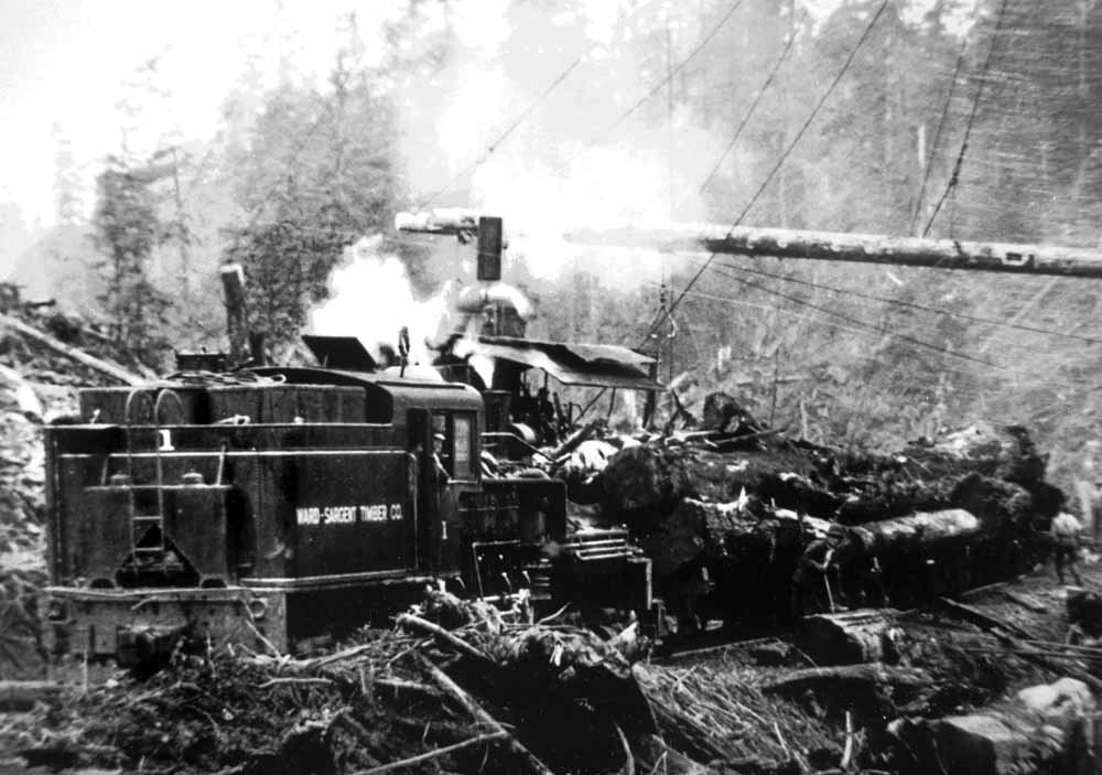 Ward-Sargent Shay #1, formerly the Kesterson #1, at work in the woods near Aberdeen, Washington. Martin Hansen/John Labbe/Oso Publishing Company collections,