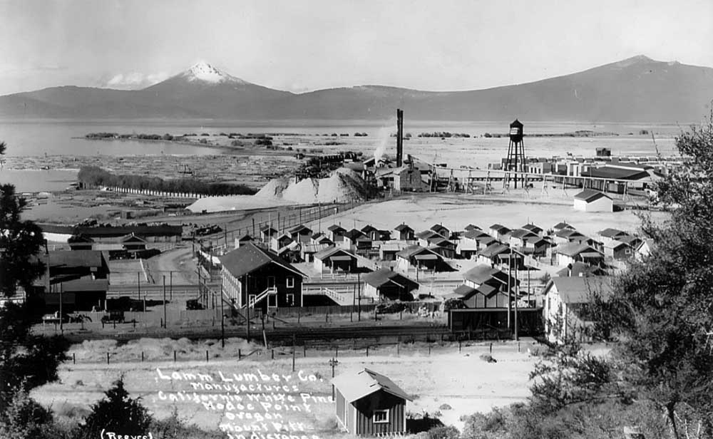 History W.E. Lamm launched the Lamm Lumber Company in October 1914. The company's first operations in 1916 involved logging a tract of mostly pine timber on the west side of Klamath Lake, with the logs hauled to the shoreline by animals and then rafted across the lake to a sawmill Lamm leased. In later 1916 Lamm bought the partically built Pine Tree Lumber Company mill at Lelu, later renamed Modoc Point, located twenty miles north of Klamath Falls. Once completed Lamm started sawing the logs floated across the lake at that mill. Meanwhile, Lamm's contract logger Nicole Brothers had started construction on a logging railroad running from the west shore into the timber that eventually extended about three miles from the lake. In 1917 Lamm acquired a large block of timber on the Klamath Reservation located southwest of Kirk, and in 1919 Lamm shut down the logging show on the west side of the lake and started building a new railroad into the new timber from the SP mainline at Kirk. This railroad was extended several times as the loggers moved deeper into the woods. A 1926 Directory of the Lumber Industry described the company's operations as follows: "Lamm Lumber Co., Modoc Point; camp post office, Kirk; daily output, 150M; 1 side; 100 men; machine shop; commissary; electric light plant; air compressors; 1 McGiffert loader; 4 logging tractors; 5 sets big wheels; 42 horses; route supplies via Kirk; camp telephone via Klamath Falls; manager, W.E. Lamm; superintendent, Claude Houghton; purchasing agent, D.H. Crump; 11 miles s.g. track; 50 lb. rail; 1 geared locomotive; 2 sets disconnected trucks; 5 flat cars; 1 moving car; 1 tank car; 1 speeder; maximum grade, 4 per cent; maximum curvature, 10 degrees; locomotive fuel, oil; trucks and flat car supplied by the Southern Pacific railroad." The timber on the Kirk line finally ran out in 1929, at which time Lamm abandoned that railroad. However, Lamm was far from done as it was just launching what would be one of the largest single railroad logging shows in the basin, excluding of course the massive Weyerhaeuser operations. In 1928 the company bought 37,000 acres of prime timber from the Long-Bell Lumber Company, which would require a forty mile long railroad built east from a connection with the Southern Pacific at Chinchalo. Lamm contracted the first part of the construction job to F. Hill Hunter's Sawmill Engineering & Construction Company, which included trying to build a fill across the Klamath Marsh in winter time conditions. The Hunter crews after much trial and error and difficulty finally got a diesel powered clamshell shovel floated on a barge, which gradually dug the frozen muck out of the marsh bottom and dumped it to build a new roadbed six feet above the marsh surface. Once the fill was complete the job of bulding track and ballasting began, which proved to be a difficulat and very dangerous job as the tracks even with a lot of wood bracing sank as much as 18 inches underneath the locomotive in most places. The engine looked "like the Leaning Tower of Pisa" most of the time while on the fill according to a writer for The Timberman who witnessed parts of the work. However, the job eventually got done, and Lamm settled down to hauling logs out of the tract to the SP for delivery to the Modoc Point mill. Two other logging railroads, Kesterson Lumber and Pelican Bay Lumber, both built logging railroads of their own off of the Lamm railroad; the Kesterson railroad caused Lamm some troubles, as it had counted on a contract to haul their logs to help finance the enormous cost of the new logging railroad, but Kesterson only shipped a small fraction of the required board feet before defaulting on the agreement. Lamm later brought suit against Kesterson, but eventually settled for some used logging equipment and Kesterson's idled railroad. Long-Bell Lumber also loaded logs onto railcars at a couple points on the Lamm railroad, but did not otherwise build any lines of their own. Lamm Lumber paid dearly for the choice to run the railroad across the Marsh as the roadbed continually sank into the muck and required constant rock dumping and jacking and other maintenance to keep the line passable. Joseph H. Pierre in his fine book Whan Timber Stood Tall about his life working mostly in the timber industry wrote about a summer he spent during the depths of the Depression working for Lamm. The company was one of the few offering employment in the industry at the time, and Pierre got his foot in the door because of a friend of his who knew the Lamm woods superintendant. Pierre spent three weeks on the Lamm section gang, mostly working on the marsh trackage and correcting sunk kinks before a spot opened up for him in the woods. Pierre related one other interesting story about his time with the company, after several weeks working on the logging side the company promoted him to the cat hostler position, which spent every night at the landing servicing the Caterpillar tractors and McGiffert loader. Among the tasks was draining the water out of the cats each night and then refilling them the next morning, and then starting the cats before the loggers arrived for work. Firing up the tractors was accomplished by manually spinning the flywheelmeans of with a starting bar, but the tractors had accumulated so much dust in the starting mechanisms that getting them going was very difficult to impossible on most mornings, and the mechanic refused to overhaul the cats. On his second night on that job Pierre came up with a solution in which he would park the five cats- four of them Caterpillar "Sixty" tractors and one "Thirty" that the crews referred to as the kitten- at the top of a nearby rise, where he drained them. When the time came to get them started he would coast them off the hill and pop the clutch as they rolled towards the landing, he would then bring them to a stop as he reached the landing where he would immediately grab the hose and refill the radiators