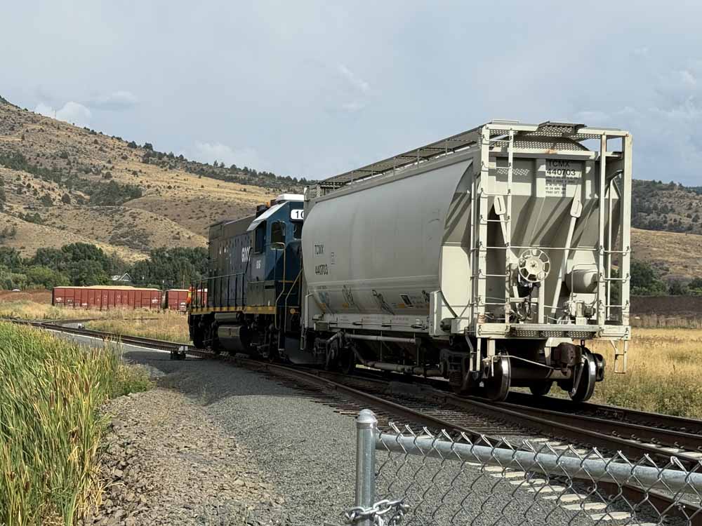 On Friday, 5 September 2025, Goose Lake #106 pulled the first load shipped by Eco Materials Technologies out of their new plant in Lakeview. Goose Lake Railway photo. |