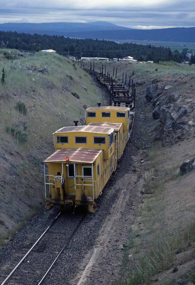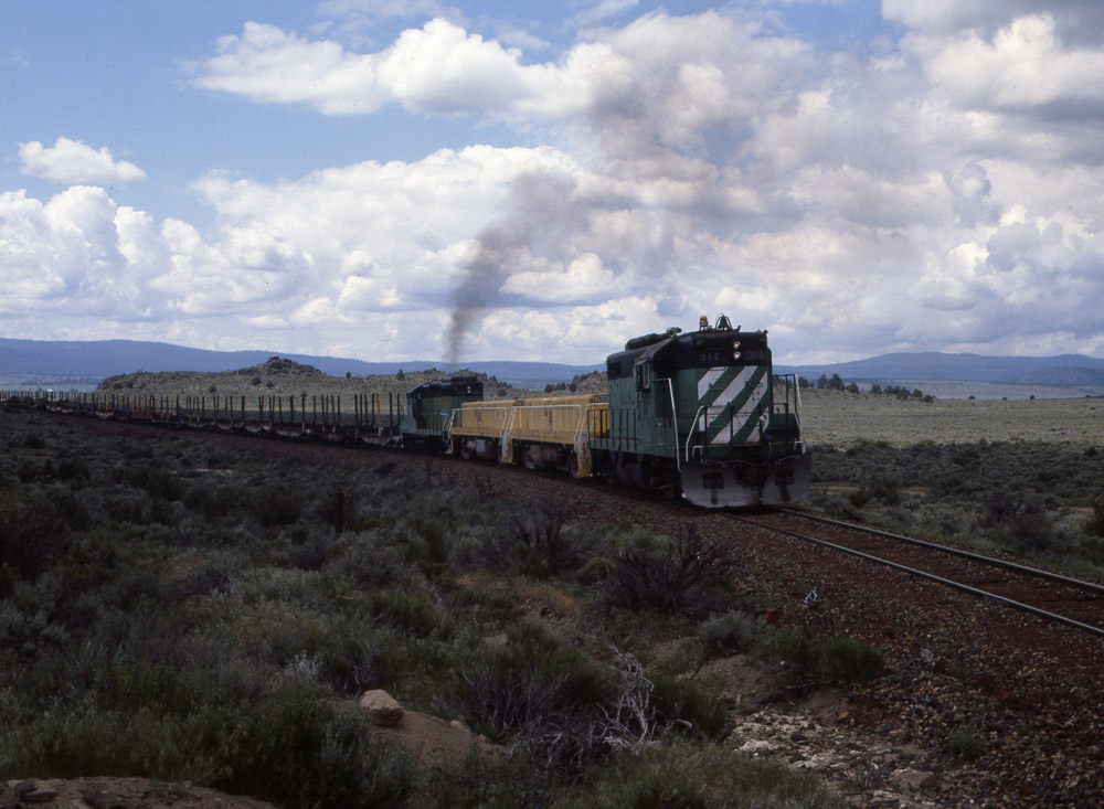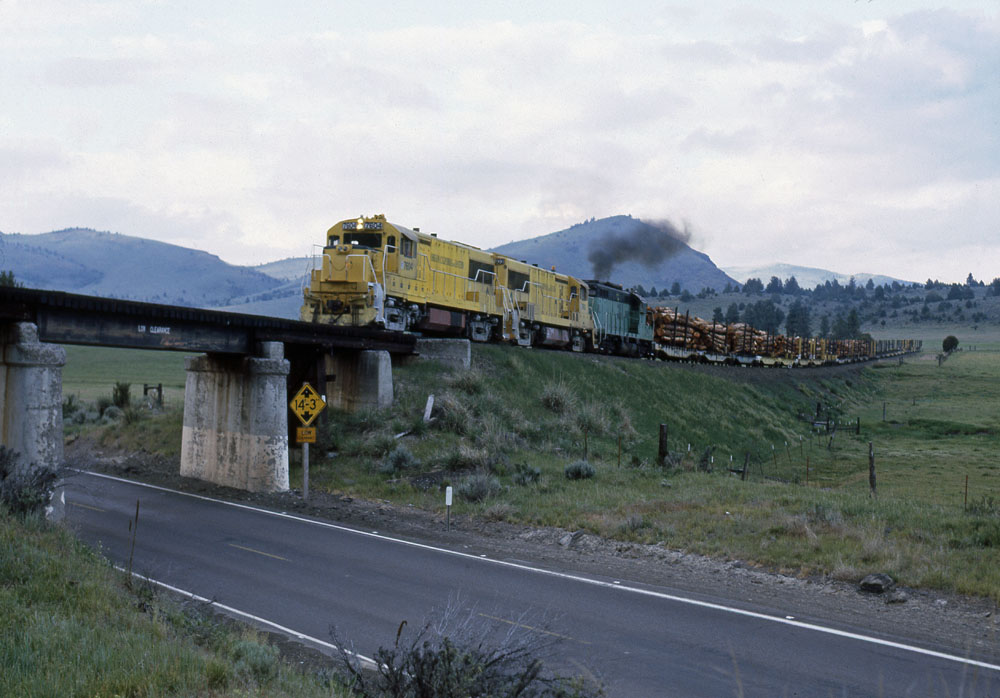 Weyerheauser #311 and #312 spliced by the two OC&E slugs working in the Sycan yard.