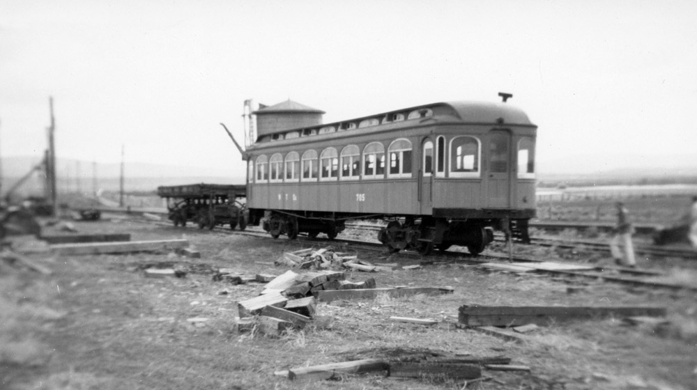 By the later 1920s an increasing percentage of loggers had families requiring more amenities and stable living situations than the single men more common in the earlier years of the industry. Most timber companies responded by transition from mobile to semi-permanently located logging communities, but this came at the expense of having to transport loggers ever increasing distanced between the camps and the woods. In the days before automobiles and crew vans most larger timber companies usually rostered some sort of passenger equipment used to move loggers on their commute. Weyerhaeuser purchased a pair of former interurban cars from the San Francisco & Napa Valley Railroad for this role, later supplemented by a former Southern Pacific "Harriman" style steel coach. |