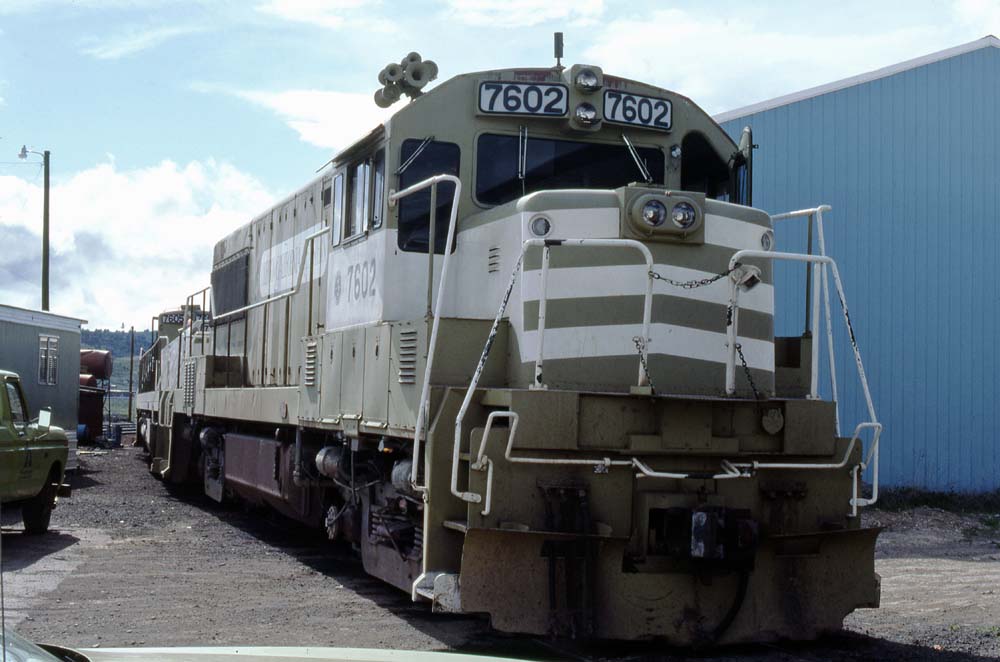 Newly completed Oregon California & Eastern #7602 preparing to depart M-K's Boise shops on 30 July 1976. Jeff Moore collection. |