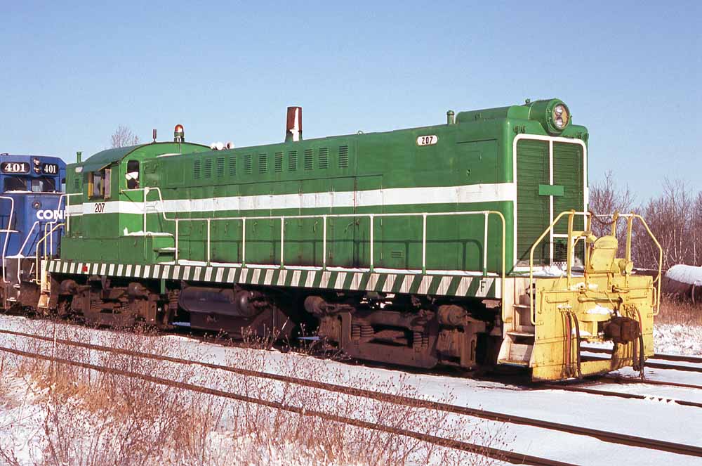 Escanaba & Lake Superior #207, the former OC&E #7908, in Wells, Michigan, on 20 December 1992. J.M. Seidl photo. |