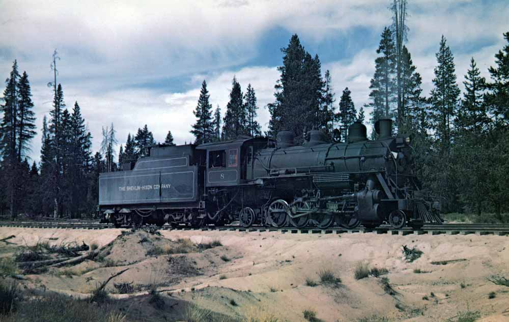 A color photo of Shevlin-Hixon #8 at Chemult. Vanishing Vistas postcard from a Guy L. Dunscomb photo.