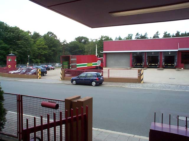 This picture is taken at the front entrance to the LGB Factory offices. Across the street is the shipping area where all items pass through. This LGB truck had just arrived with parts.