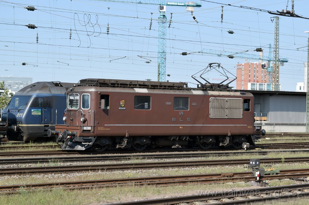 | BLSC Re 4/4 176 (Re 425.176-5) ''Hohtenn'' (91 85 4 425 176-5 CH-BLSC) / Basel Badische Bahnhof 31.8.2015 | 3665-0050-310815 | |