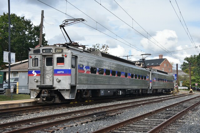 October 1 2024 It isn't often that you see a single Silverliner outside of shop moves in town or the Cynwyd Line, so seeing Silverliner IV SPAX 299 heading north at Lansdale was a surprise. |