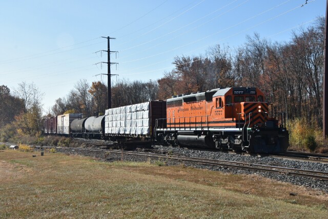 | October 23 2024 Pennsylvania Northeastern Railroad Bethlehem Branch Local L160 working Lansdale yard with C39-8 PN 8212 in the consist. |
