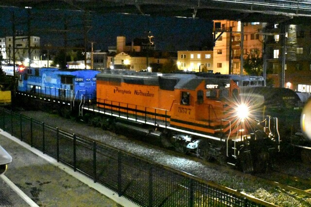 | It's late afternoon, L160 with SD40-2 PN 5577 has returned to the yard, but they apparently haven't finished with 8212. |