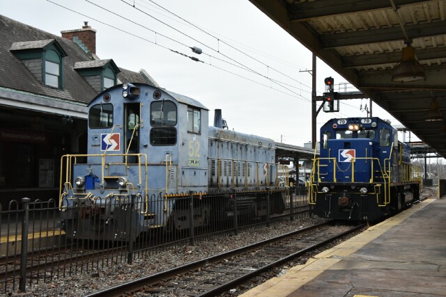 | This is what it was waiting for: SEPTA Extra with genset SPAX 70 pulling SW1200 SPAX 52. |