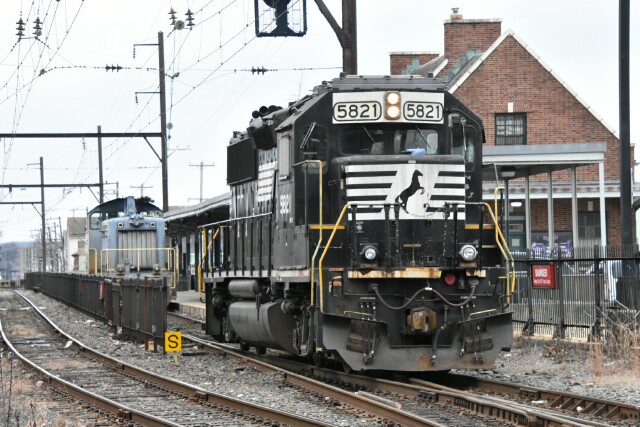 | After coupling up, NS H82 departed the station just as an outbound SEPTA train made a stop. |
