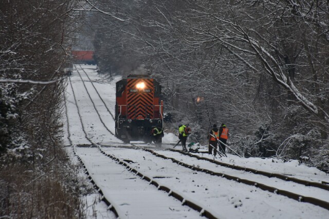 | SD40-2W PN 5315 shuttles a crew of maintainers to clear the switches along the line. |