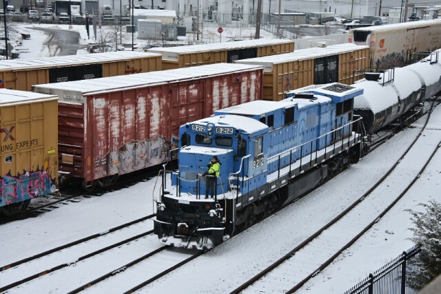 | February 12 2025 A dusting of snow covered the area as CSX L042 power rests in the yard with PN and NHRR engines. |