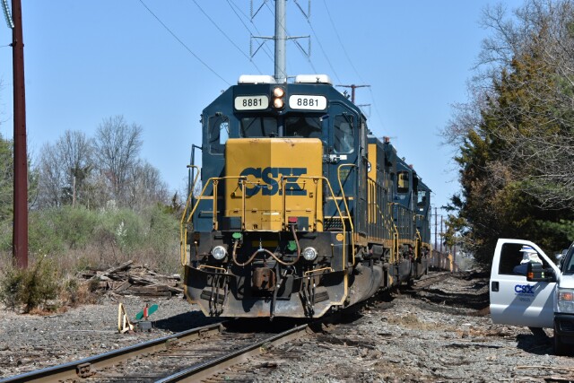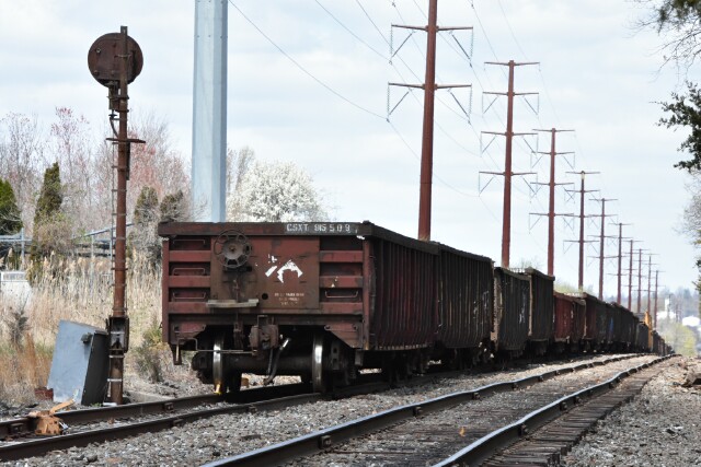 | April 8 2025 Spring has sprung and it is maintenance season, and CSX prepares to do some work on their half of the Stony Creek Branch. First, we are gonna need ties, lots and lots of ties, so CSX L042 brought in a string of MOW gondolas filled with them, dropping them off between Orvilla and Vine. |