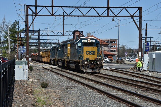 | April 9 2025 After a brief hold at Dale, SEPTA finally gave CSX U042 the signal. |