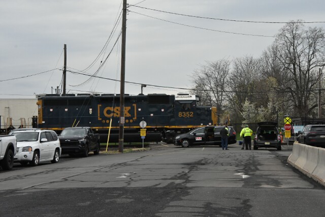 | April 15 2025 After waiting at Conte Luna for 2 hours, at 8:40 a very late CSX L042 finally got the signal from the dispatcher to come down to CP Ford on the NS Morrisville Line Connecting Track for a trip across the SEPTA Norristown Line to CP Elm and the Stony Creek Branch. |