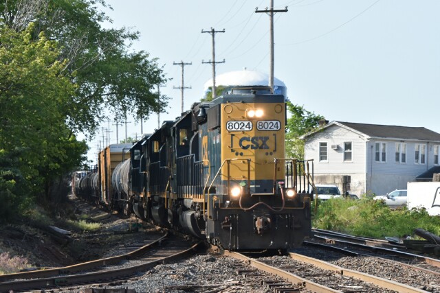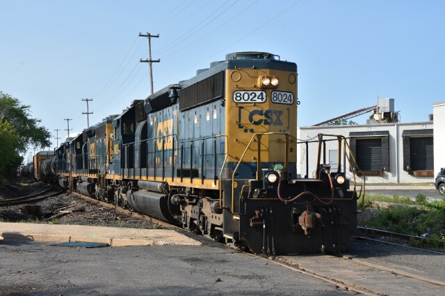 | Once again the lead unit was running long hood forward, but this time it was SD40-2 CSX 8024 and it was not alone, accompanied by ... |