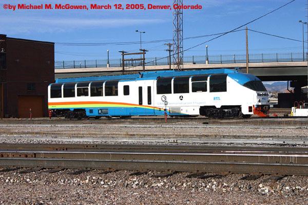 Florida Dept. of Transportation's first set of DMU vehicles is bound to be historic. The first car, purchased in early April, 2004, was already steeped in history when the ink dried on the contract. In 2002, Colorado Railcar unveiled its revolutionary DMU (Diesel Multiple Unit) demonstrator CRMX 2002. This was the first commuter vehicle to meet the stringent FRA 49 CFR Part 238 compression load requirements. In Feb., 2002, the frame of the prototype survived an 800,000 pound load test to meet that standard. This self propeled car is tougher than the average freight locomotive! DMU was envisioned as an affordable, practical extension of the manufacturer's normal business. One look at the demonstrator unit reveals its obvious development from the single level dome. The otional wraparound windows that are a trademark of the ultradome design are found on the demonstrator, as well as the aero nose option. The interior was layed out to show several different configurations. The 2002 spent several years demonstrating the DMU concept to current and potential future commuter operators in most major metropolitan areas in the US. The car also made trips to Vancouver, BC, and Alaska. It is presently (as of early 2004) in revenue service on Florida Tri-Rail, having been purchased by FL-DOT for a test program that will include the 2002, the first double decker DMU to be built, and a double decker trailer. In 2005, the DMU prototype was remodeled and repainted forits new owner. Modifications included the removal of the service bar in the back half of the car to make way for more ADA tiedowns, and the addition of a window in the restroom.