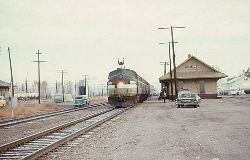 Amtrak Train arrived at Northern Pacific Deer Lodge Station (October 1972)