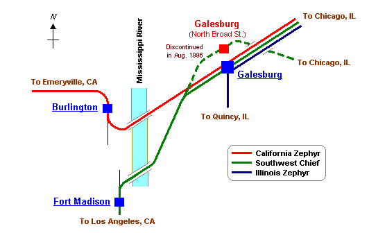Note: Southwest Chief no longer stops at Galesburg, IL (N. Broad St.) due to rerouting in 1996 |