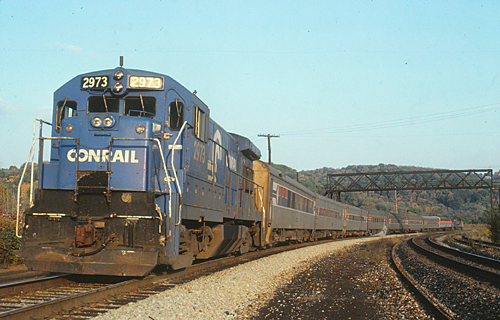Amtrak train is running near former Amtrak Pitcairn Station (October 1998) |