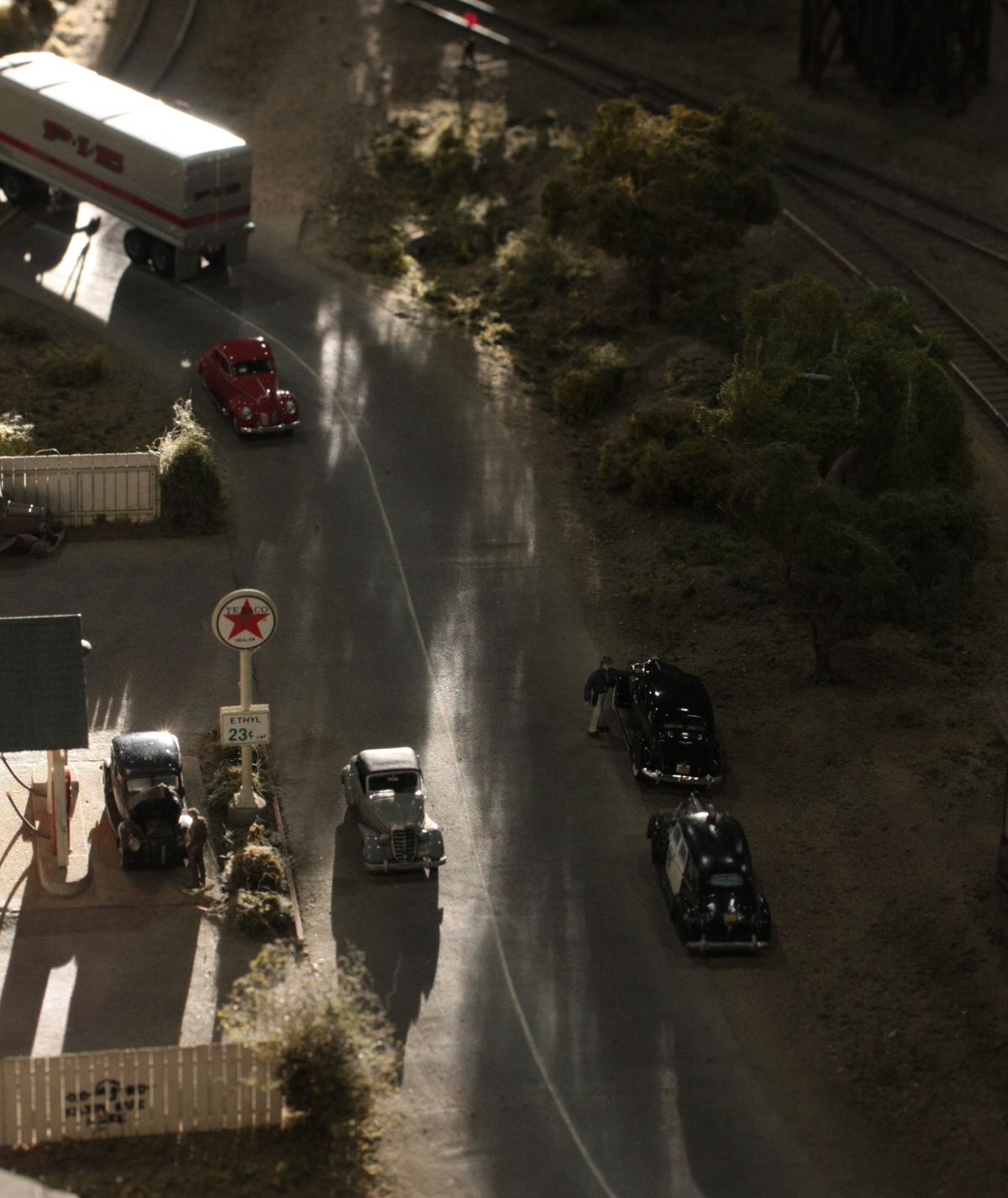 The '20s, '30s and Beyond Model Railroad replicates the golden age of railroading in 1:87 HO scale. Members build and transport their own six-foot-long modules that depict North American railroading during the period from the end of WWI through the steam-to-diesel era. We set up several times a year at public locations in southern California.