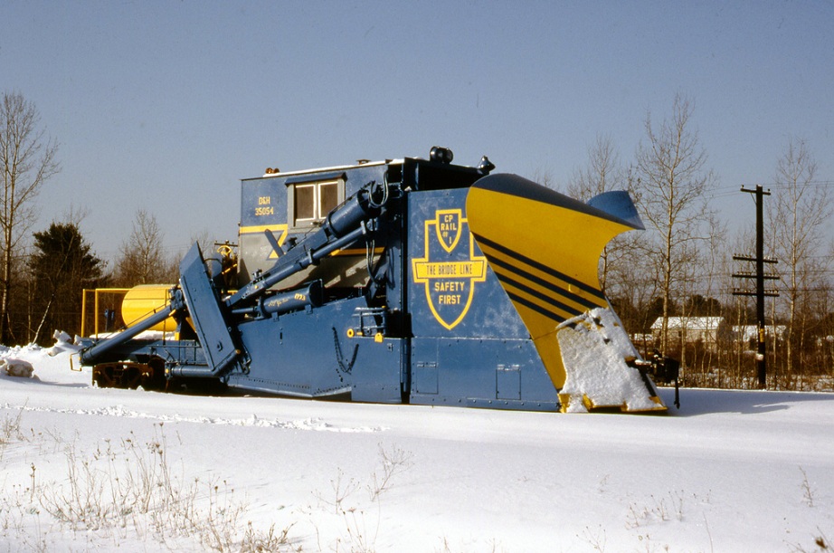 Delaware & Hudson 35054. D&H's only Lightning Stripe spreader. Saratoga Springs, NY, 2/15/93. Photo by J. Bartley.