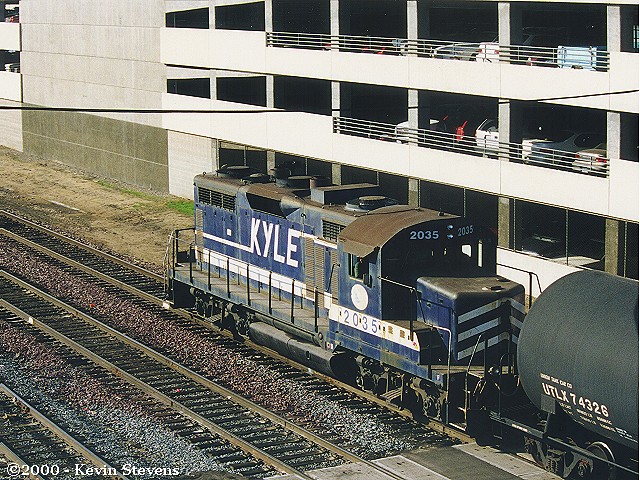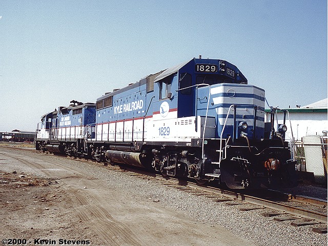 SJVR recently received two additional units, both of which have been put to work in the Bakersfield area. One of the units, Kyle Railroad GP28 #1829 was found parked on the East leg of the wye at Kern Junction on a quiet Sunday morning. It is common practice for SJVR power to be tied up away from the Bakersfield terminal over the weekend between the Saturday and Monday shifts. The other new locomotive is GP20 #2036, which is likewise lettered for SJVR's corporate partner (under StatesRail ownership) Kyle Railroad.