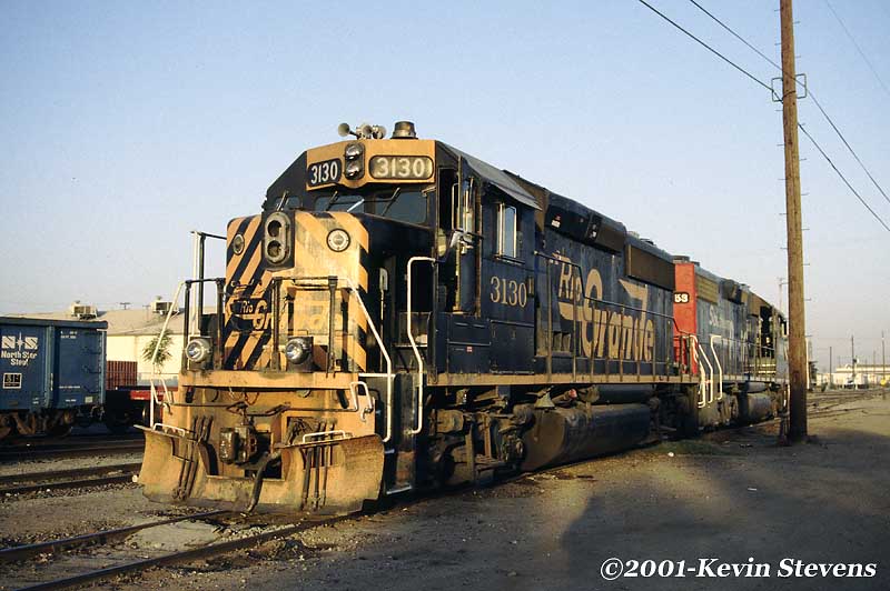 In a visual commentary of the times, two ex-SP SD40T-2's that once ruled Tehachapi Pass have been demoted to yard and local duties. Here they are assembling a train near the East end of the Bakersfield Yard.