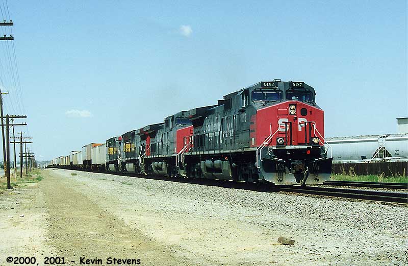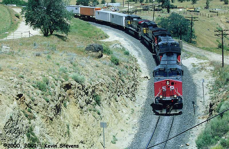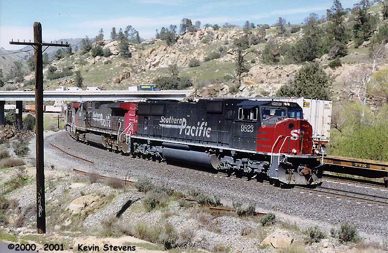 Although SP power is still common, complete sets of SP power have become rare. On Halloween, the ghosts of SP have brought a complete set of gray and red power through Bakersfield on a Westbound manifest. Late in the year 2000, some four years since UP's takeover, photos like this have become harder and harder to come by.