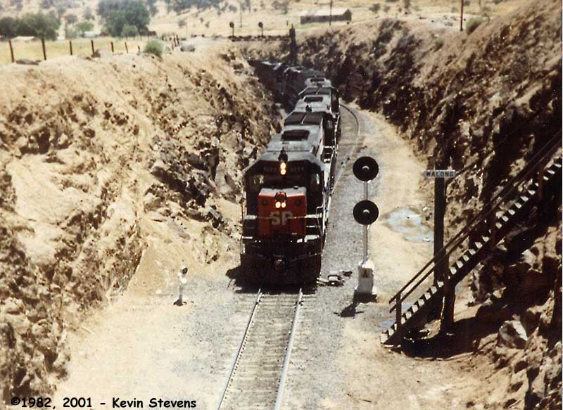 A Westbound SP train drifts downhill approaching Tunnel #9 directly in the middle of the loop.
