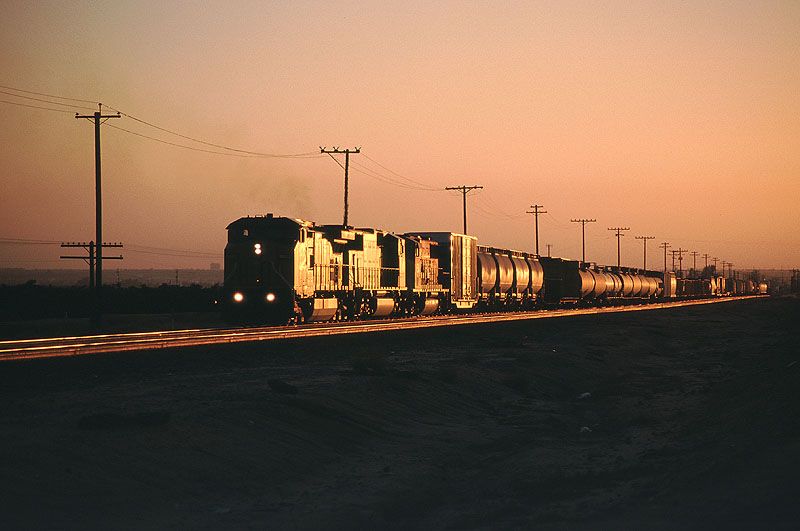 The midday sky has cleared as the I-OAHO has started to roll down the East slope of Tehachapi Pass toward Mojave. Visible in the background is the huge cement plant at Monolith.