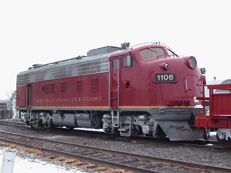 December 29, 2001. The nicely painted red with gold pinstriping rolling stock of the New Orleans and Gulf Coast Railroad has made its new home in the I.N.G.N. hometown of Emmett. NO&GC was a steam and diesel powered tourist operation in Louisana owned by Rio Grande Pacific Corp., the parent company of Idaho Northern and Pacific. From comments of employees, it seems unlikely that the steam engine will come to Idaho.