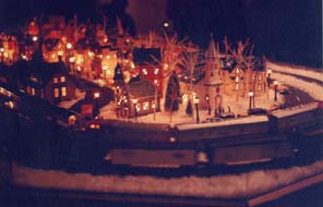 Christmas village with rest of Virginian train, Hope Danielson seen in left foreground | ||