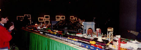 Back view of "Hellgate bridge" with long Virginian train in foreground | ||