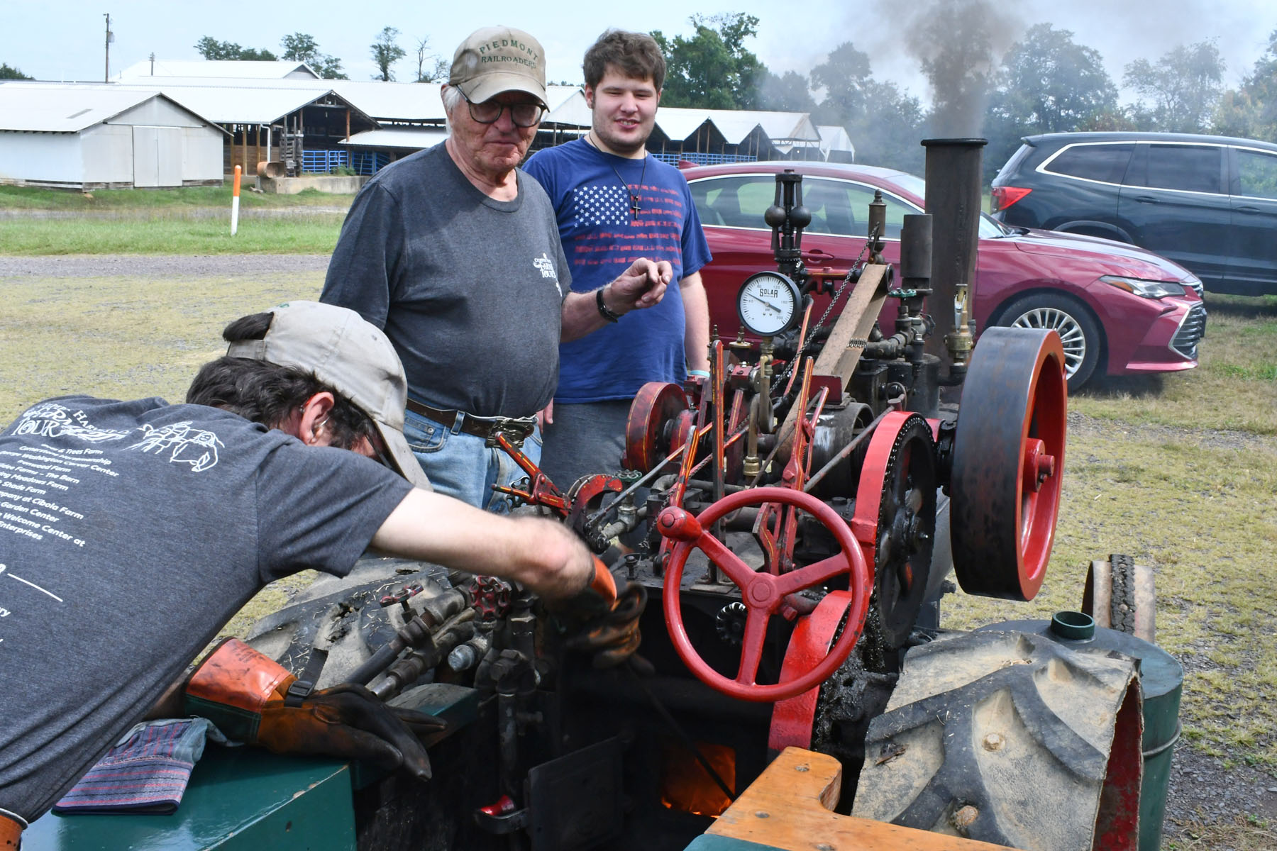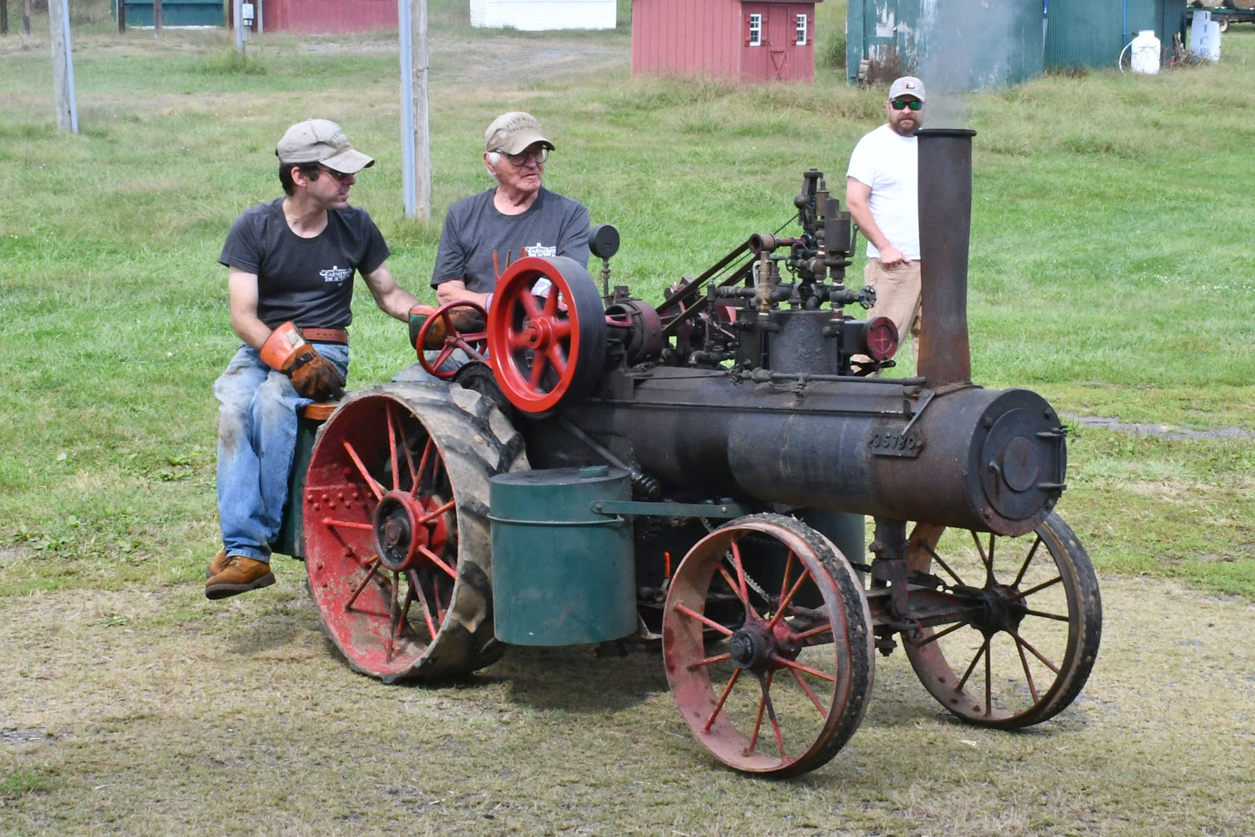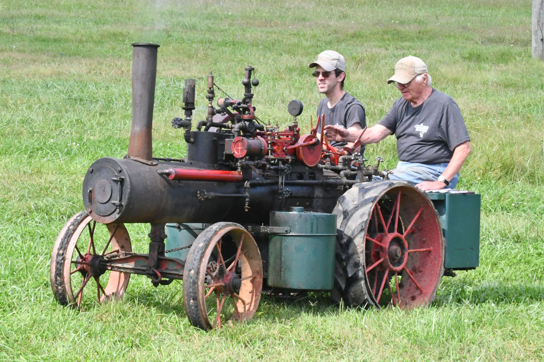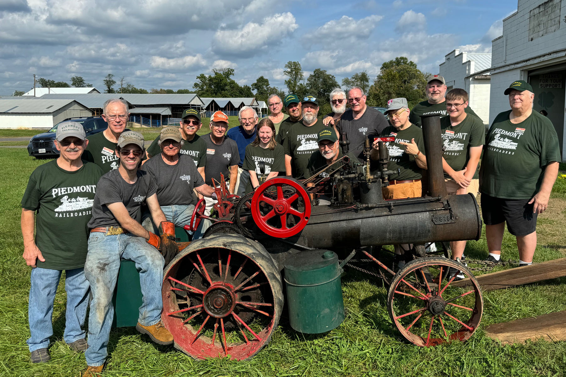 PRR members gathered behind the Jimmy's Garr-Scout steam tractor model built in 1960s. (1/3 model of actual steam tractor around 1910.)